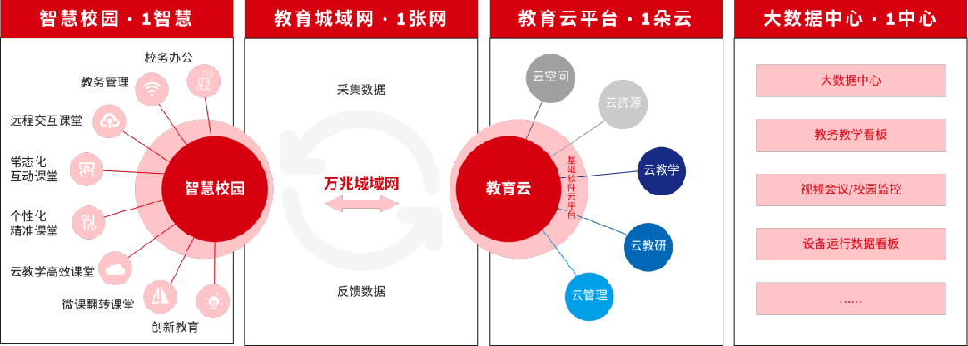 建設(shè)全市(區(qū)、縣)區(qū)域教育信息化:1智慧、1張網(wǎng)、1朵云、1中心